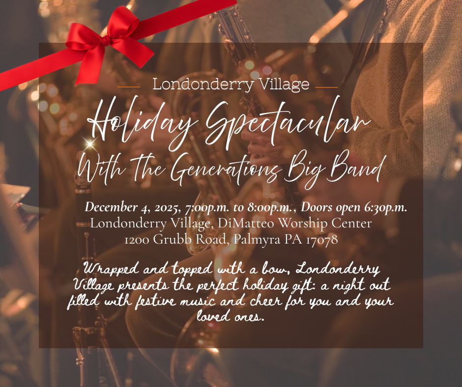 The holiday season is right around the corner, and Londonderry Village is thrilled to celebrate with an evening that promises joy, music, and community spirit. This December, we invite residents, families, and friends to join us for our Holiday Spectacular featuring the Generations Big Band—a lively, heartwarming event that’s sure to become a cherished seasonal tradition.
