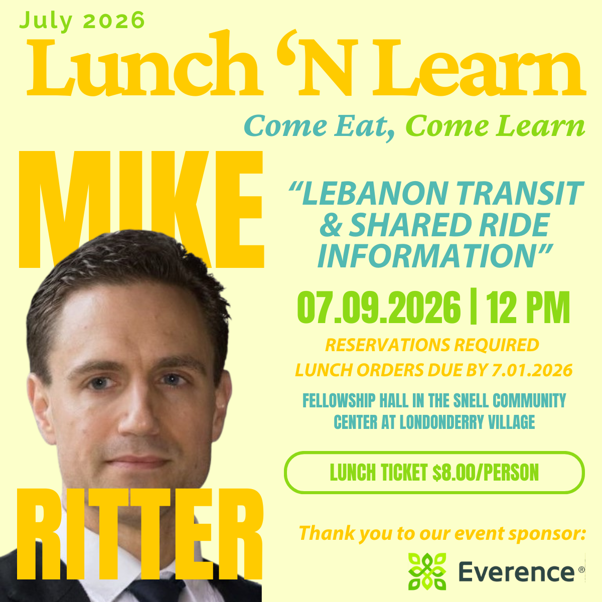 Lunch N Learn – July 9th, 2026 | Lebanon Transit & Shared Ride Information with Mike Ritter