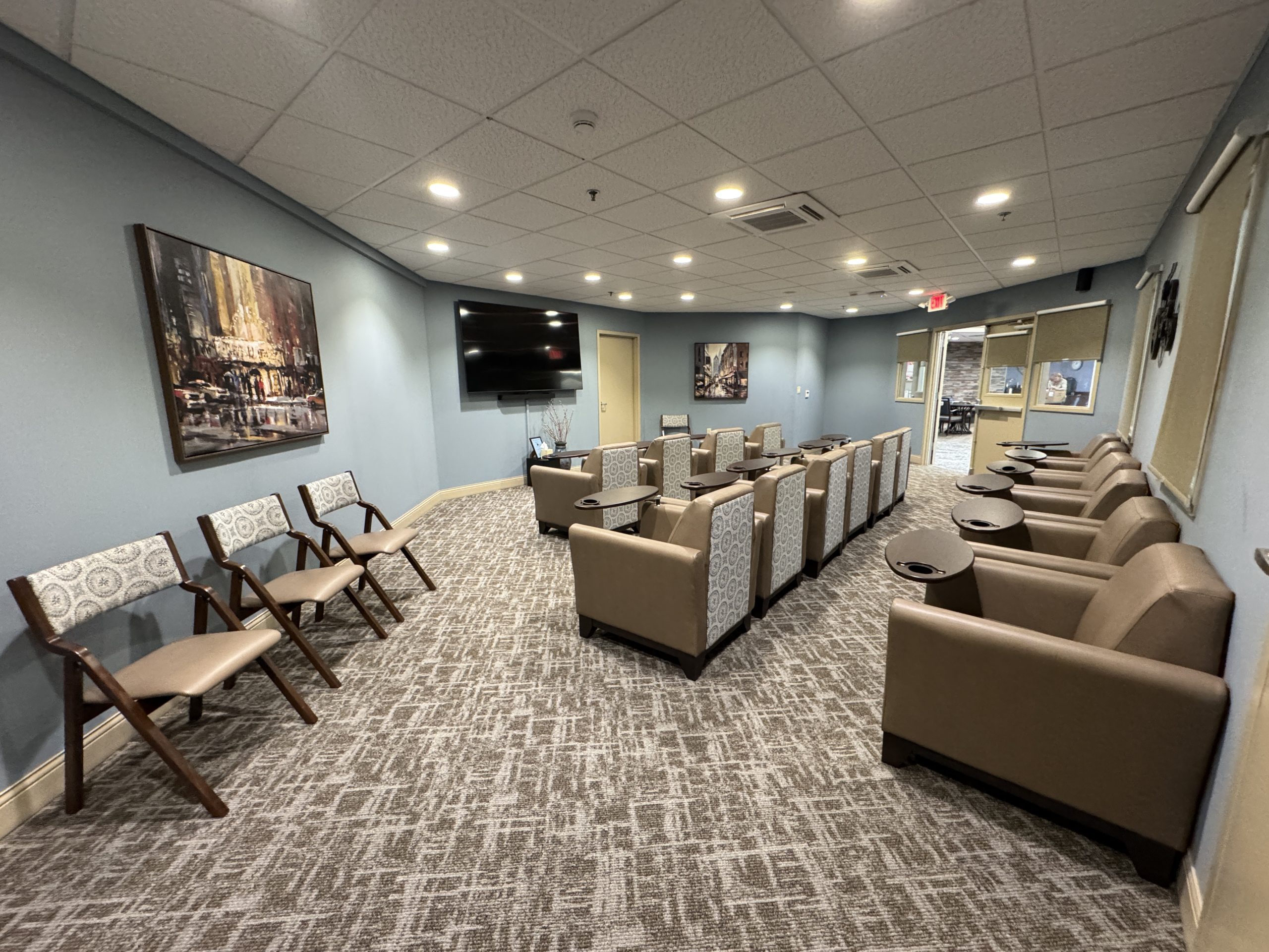 Londonderry Village’s theater room welcomes those who are coming to attend a TED (Technology and Education Discussion), having a Bible study or joining a prayer group.